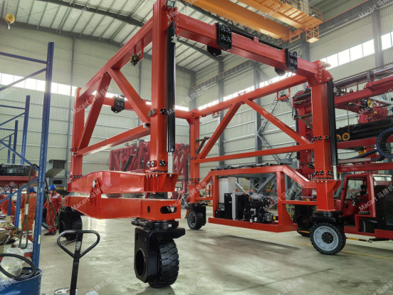跨运车的控制系统具备强大的适应性和灵活性。跨运车的设计使其能够适用于各类集装箱,包括标准集装箱、宽体集装箱、冷冻集装箱等。其控制系统能够根据不同的集装箱类型和作业需求,自动调整吊具的夹持方式、升降高度以及行驶速度等参数,确保作业的高效和安全。此外,跨运车的转向系统也具备高度的灵活性,能够在狭窄的堆场区域内实现灵活转向,包括前轮转向、全轮转向或蟹行转向(横移)等,确保在重载情况下也能实现精确稳定的转向。